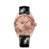 The sun-brushed 18K Sedna™ Gold “Pie Pan” dial marked “Au750” is reminiscent of the first 1952 Constellation model. Each of its facets includes a month of the year in keeping with the Annual Calendar function. There is an 18K Sedna™ Gold Constellation star and OMEGA logo. The 18K Sedna™ Gold facetted hour and minute hands, and indexes, are set with black onyx.