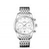 This model features a black dial with a striking grooved rhodium-plated hour track and a date window at the 3 o’clock position. A scratch-resistant sapphire crystal protects this impressive dial.