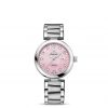 This OMEGA Ladymatic features a pink mother-of-pearl dial marked with diamond-set indexes and decorated in a supernova pattern with a date window at the 3 o’clock position. The exquisite dial is visible through a scratch-resistant sapphire crystal. The bezel is mounted on a 34 mm stainless steel case on a pink satin-brushed leather strap.