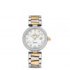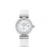 The attractive dial is made with white, mother-of-pearl, to accentuate the feminine touch.