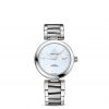 Complementing the case and dial is an 18K Sedna™ gold bracelet whose central links are inlaid with precisely-cut extra white mother-of-pearl. The transparent caseback makes it possible to view the OMEGA Co-Axial calibre 8521 movement within.