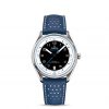 This 39.5 mm model has a stainless steel case and a blue, micro-perforated leather strap. The domed black and white dial includes sporty hands, a date window and an easy-to-read minute track, as well as a blue pulse reader that enables the wearer to calculate their pulse beats-per-minute.