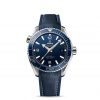 This model, with its scratch-resistant sapphire crystal, features a black ceramic dial with Arabic numerals and a date window at the 3 o’clock position. The black ceramic unidirectional bezel with OMEGA Liquidmetal™ diving scale is mounted on a 43.5 mm stainless steel case.