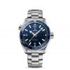 This model, with its scratch-resistant sapphire crystal, features a blue ceramic dial with Arabic numerals and a date window at the 3 o’clock position. The blue ceramic unidirectional bezel with OMEGA Liquidmetal™ diving scale is mounted on a 43.5 mm stainless steel case.