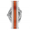 Other features include an alveol screw-in caseback and a striped orange, grey and white polyamide NATO strap with a polished buckle and strap keepers in stainless steel.