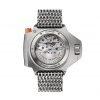 The metallic style of this watch gives strength to the idea of ocean exploration, and the polished grade 2 titanium “sharkproof” mesh bracelet further adds to the distinct sense of adventure. The watch is delivered in a special presentation box along with an additional grey rubber strap.