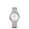 This model features an impressive two-zone, sun-brushed blue dial with diamond-set indexes and Roman numerals at the 6, 9 and 12 o’clock positions. The striking dial, with a date window at 3 o’clock, is protected by a scratch-resistant sapphire crystal.