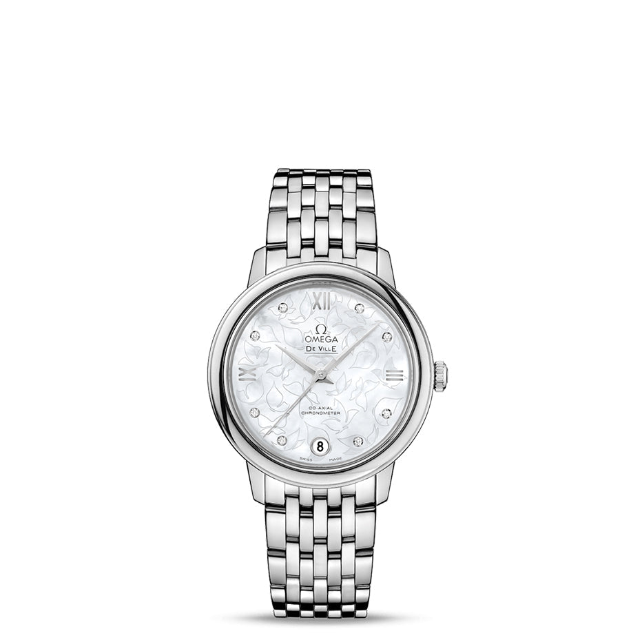 The 32.7 mm stainless steel case is presented on a matching bracelet. At the heart of this De Ville Prestige “Butterfly” is the Co-Axial calibre 2500.