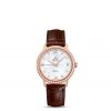 The 32.7 mm 18K red gold and stainless steel case is presented on a taupe-brown leather strap. At the heart of this timepiece is the Co-Axial calibre 2500.