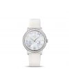 These timepieces are characterised by pure styling with luxury finishes, and exude a timeless design. This model features an impressive two-zone white mother-of-pearl dial with eight diamond indexes and Roman numerals at the 6, 9 and 12 o’clock positions.
