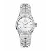 These timepieces are characterised by pure styling with luxury finishes, and exude a timeless design. This model features an impressive two-zone silver dial with diamond-set indexes and gold-fashioned Roman numerals at the 3, 6, 9 and 12 o’clock positions.