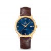This model features a sun-brushed blue dial with polished domed Roman numerals and indexes.