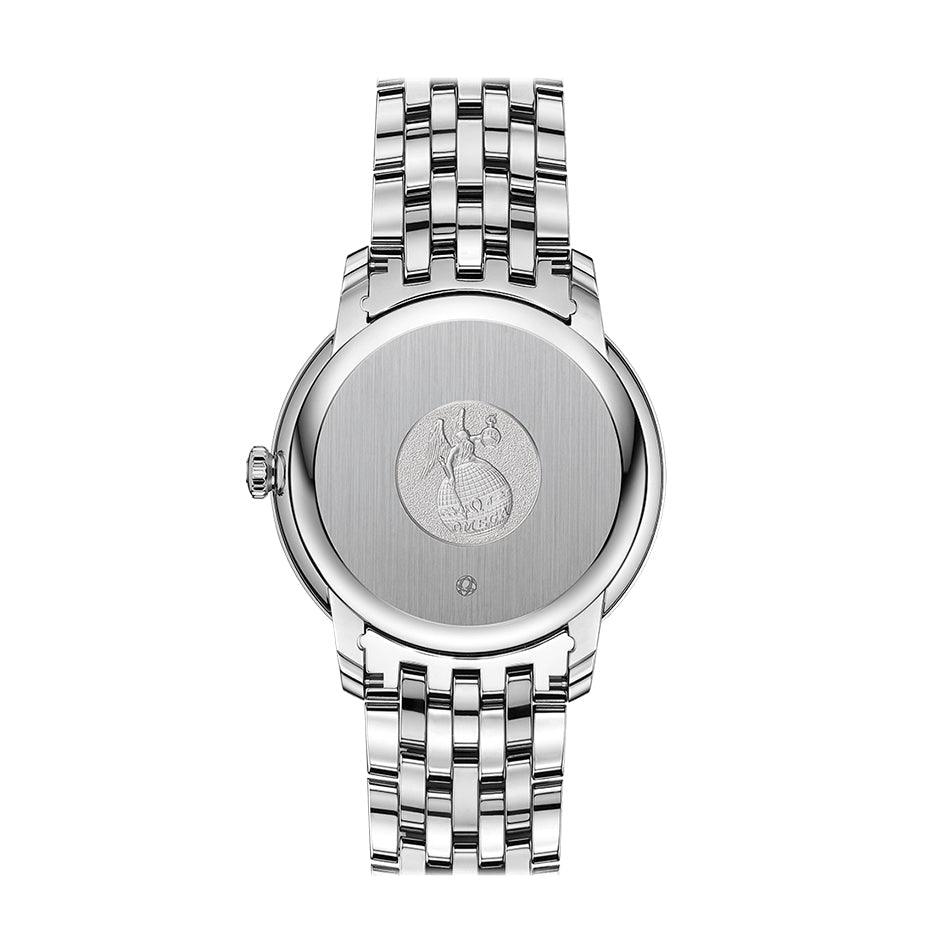 The 39.5 mm case is stainless steel and is presented on a polished stainless steel Prestige bracelet. At the heart of this timepiece is the Co-Axial Calibre 2500.