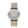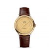 This model features a champagne dial with a silk-like pattern and an opaline finish. The hands are gold-plated and the hour-markers include six gold-plated cabochons as well as gold-plated Roman numerals. There is a date window at 3 o’clock.