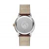 This model features a champagne dial with a silk-like pattern and an opaline finish. The hands are gold-plated and the hour-markers include six gold-plated cabochons as well as gold-plated Roman numerals. There is a date window at 3 o’clock and separate displays for the small-seconds at 9 o’clock and the power reserve at 6 o’clock.