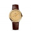 The 39.5 mm case is stainless steel and 18K yellow gold and is presented on a brown leather strap. At the heart of this timepiece is the Co-Axial Calibre 2627.