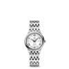 This model features a two-zone silver dial with diamond-set indexes and Roman numerals at the 3, 6, 9 and 12 o’clock positions. The diamond-set bezel is mounted on a 27.4 mm stainless steel case and is presented on a stainless steel bracelet. This wristwatch is powered by OMEGA’s calibre 1376, a precision quartz movement.