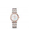 This model features a silvery diamond-set dial with a unique butterfly pattern achieved using a ramolayage, or “pounced ornament”, technique. The 18K red gold bezel is mounted on a 32.7 mm stainless steel casebody and presented on a two-tone red gold-steel bracelet. At the heart of this De Ville Prestige “Butterfly” is the OMEGA quartz calibre 4061.