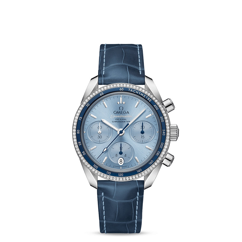 The Speedmaster 38 mm collection has been crafted with simplicity, size and colour in mind, yet still retains the look and heritage of OMEGA’s most famous chronograph.