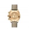 The opaline silvery dial includes horizontal oval subdials and a vertical oval date window at 6 o’clock. The indexes are made of 18K yellow gold while the hands are either 18K yellow gold or varnished green.