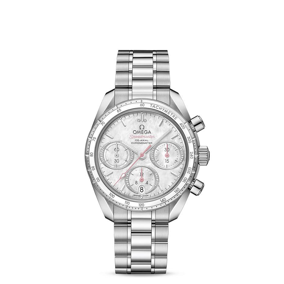 The Speedmaster 38 mm collection has been crafted with simplicity, size and colour in mind, yet still retains the look and heritage of OMEGA’s most famous chronograph.