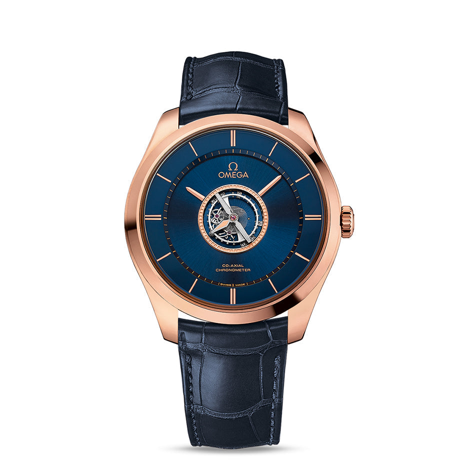 Presented on blue leather strap with an 18K Sedna™ gold clasp, the outstanding chronometric performance is achieved through OMEGA’s exclusive calibre 2638.