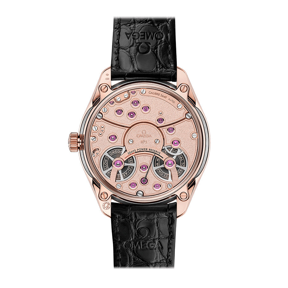 Presented on a black leather strap with polished 18K Sedna™ gold buckle, this exceptional example of the watchmaker’s art looks sensational from all angles, as the sapphire crystal caseback allows a view of the 18K Sedna™ gold movement: OMEGA’s Master Co-Axial Chronometer Calibre 2640.