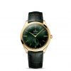 This model has a polished 40 mm 18K yellow gold case, which is presented on a green leather strap. The domed green dial includes a Small Seconds display at 6H, along with hands and domed indexes in 18K yellow gold.