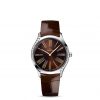 Contrasting beautifully with the diamonds and steel is a sun-brushed brown dial, coated with translucent lacquer and graced with unique applied Roman numerals and diamond-polished PVD hands in Moonshine™ Gold colour. A brown leather strap with Trésor buckle complements the dial.