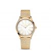 Presented on an 18K Moonshine™ gold mesh bracelet with a silk-like pattern and a special foldover clasp, the watch is driven by the OMEGA Calibre 4061, which sits just behind a polished mirror caseback that is embellished by a metalized “Her Time” pattern.