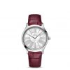 Driven by the OMEGA calibre 4061, the watch is presented on a red garnet leather strap with diamond-set buckle, which contrasts beautifully with the white pearled mother-of-pearl dial.