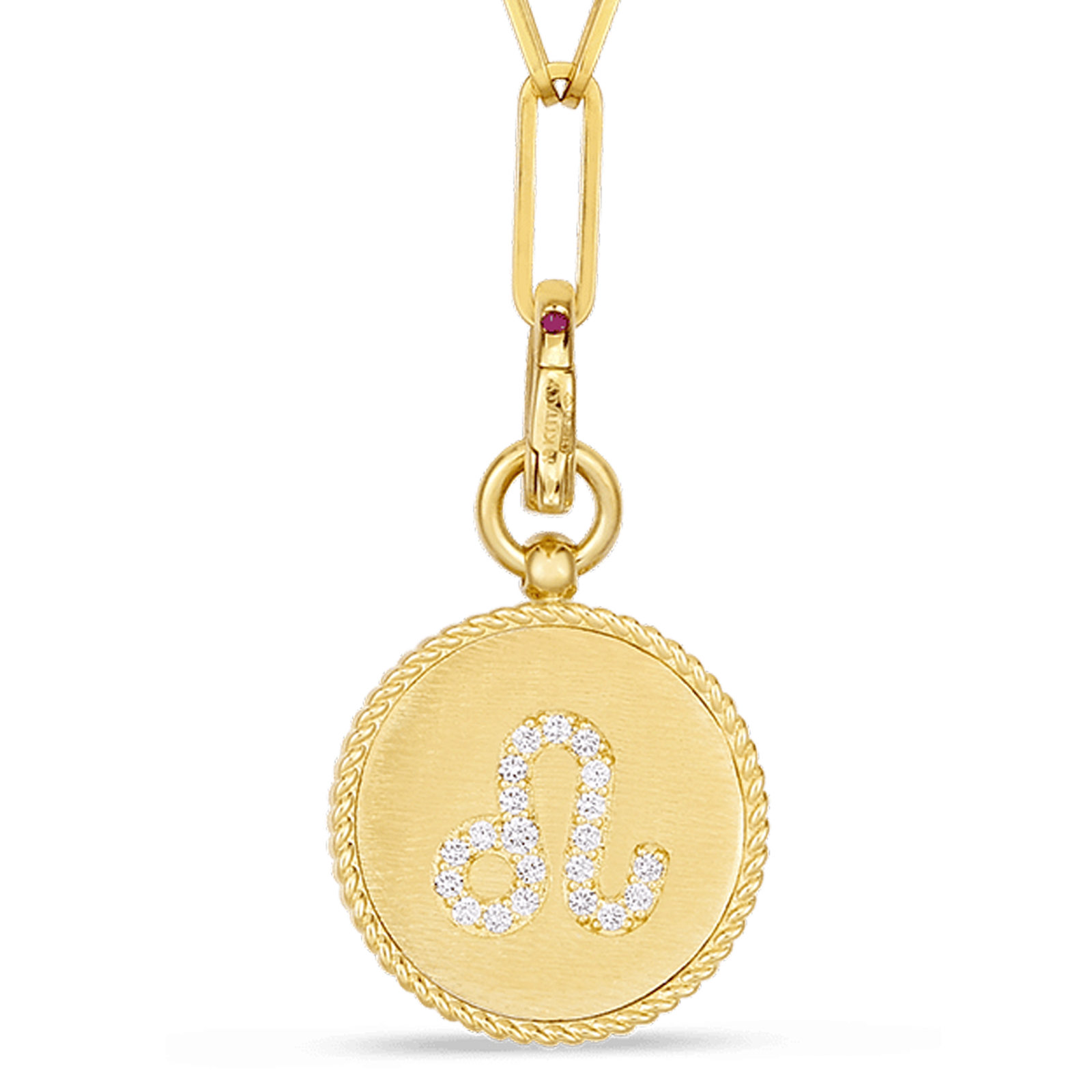 PENDANT FEATURES DIAMOND ZODIAC SYMBOL ON THE FRONT & DIAMOND PRINCESS PATTERN ON BACK SIDE. MEDALLION MEASURES APPROX 17MM AT WIDEST POINT AND HAS A CLASP ENABLING YOU TO ATTACH WHERE YOU LIKE ON OUR 19″ PAPER-CLIP CHAIN.