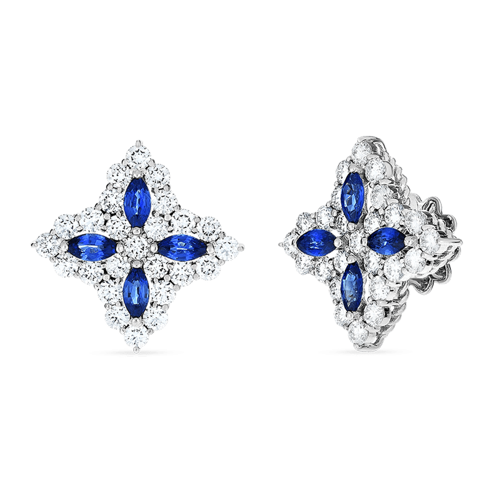 Roberto Coin 18K Diamond & Sapphire Lg Flower Stud Earring – 8882467AWERXS-0