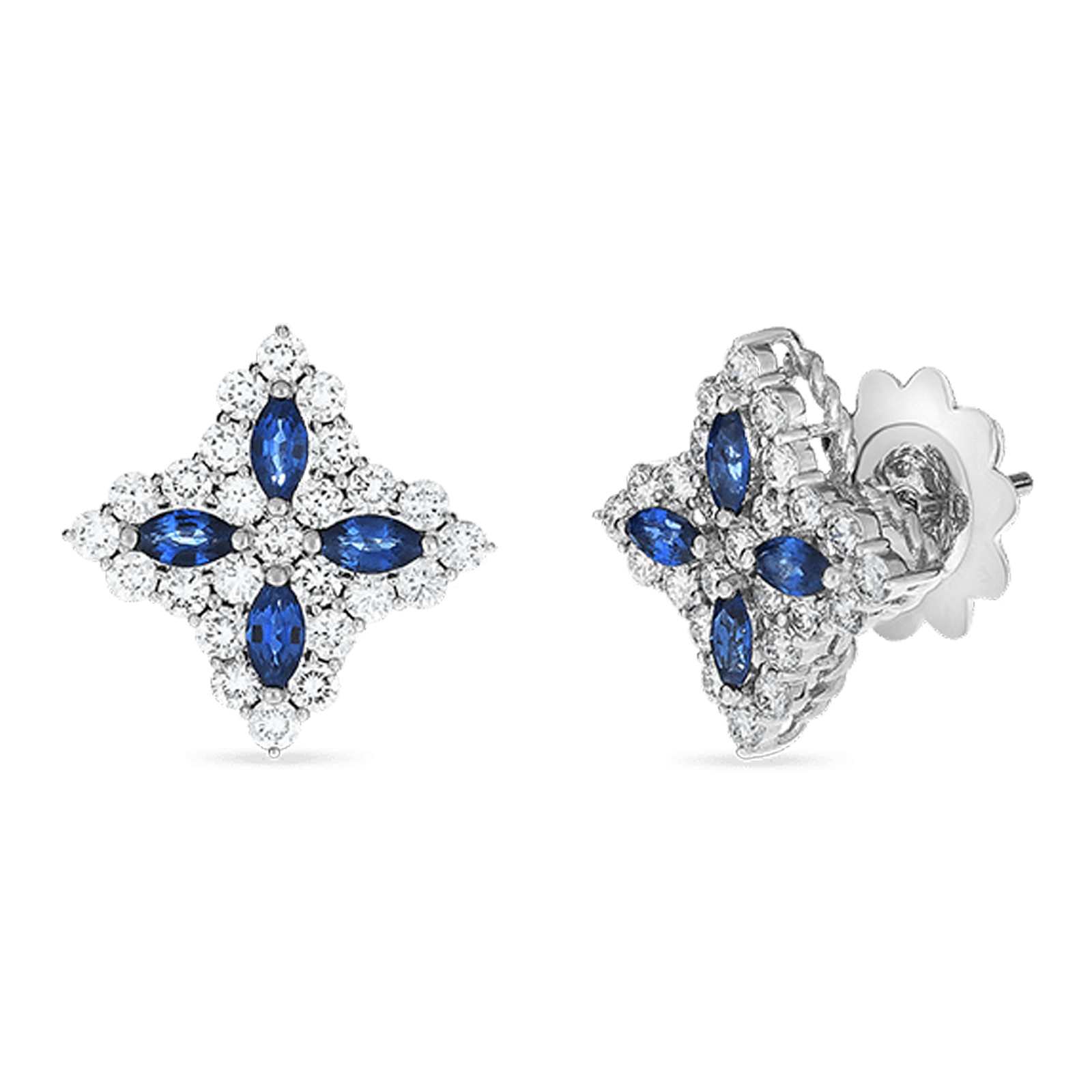 Roberto Coin 18K Diamond & Sapphire Medium Flower Stud Earring – 8882466AWERXS-0