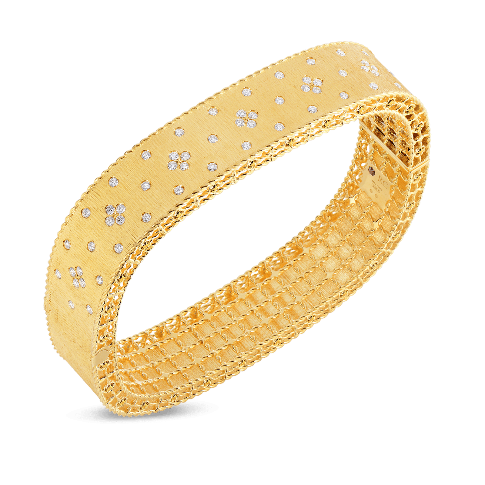 Roberto Coin 18K Gold Satin Finish Bangle With Fleur De Lis Diamonds – 7771195AYBAX