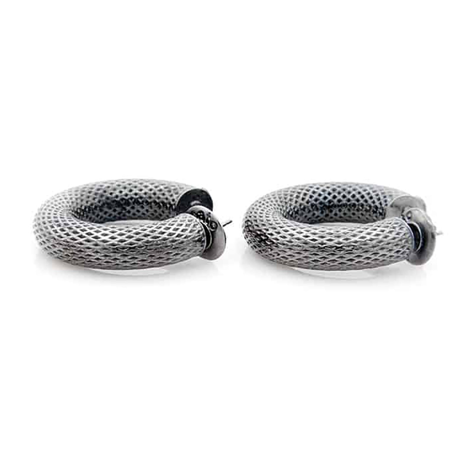 Rosato Italia Women’s Sterling Silver w/Black Rhodium overlay Guilloche Hoop Earring – Sale – APH.FOR216-20.N – 193957