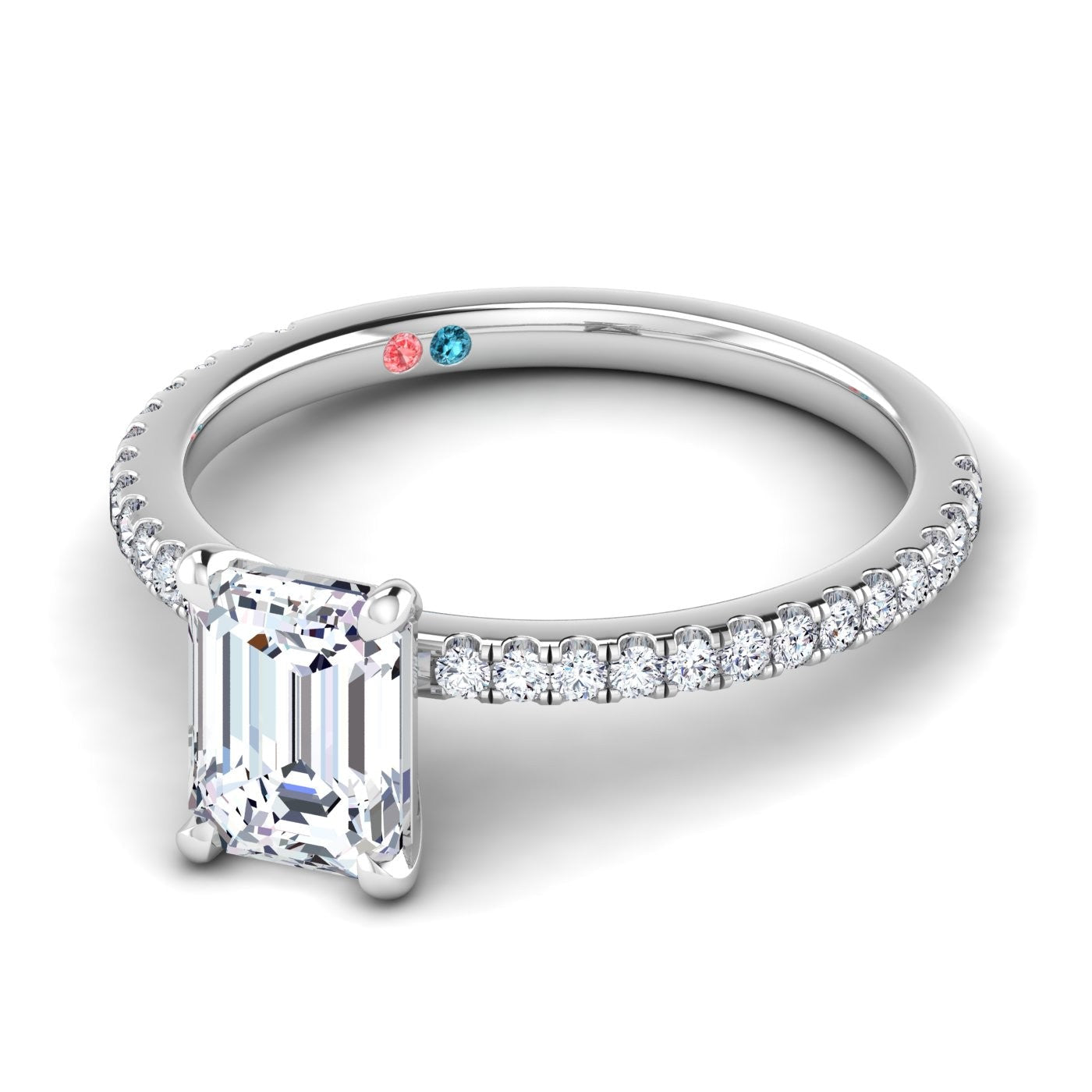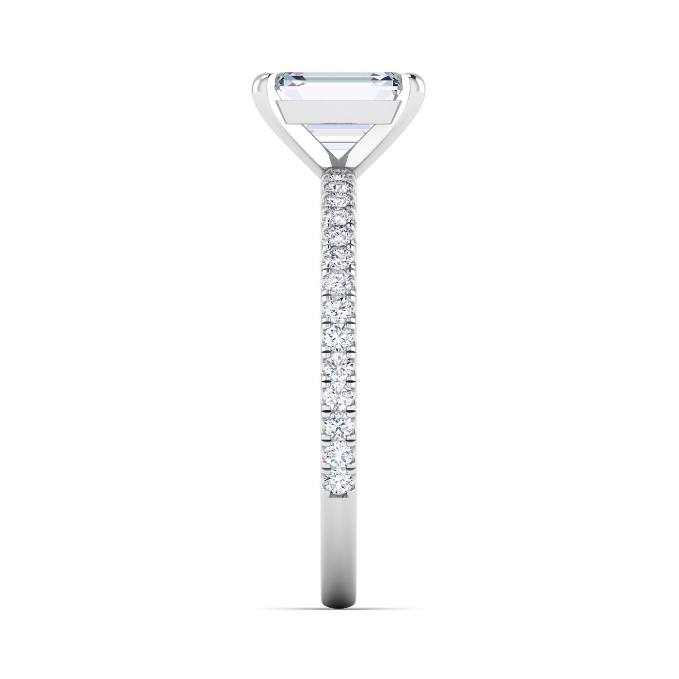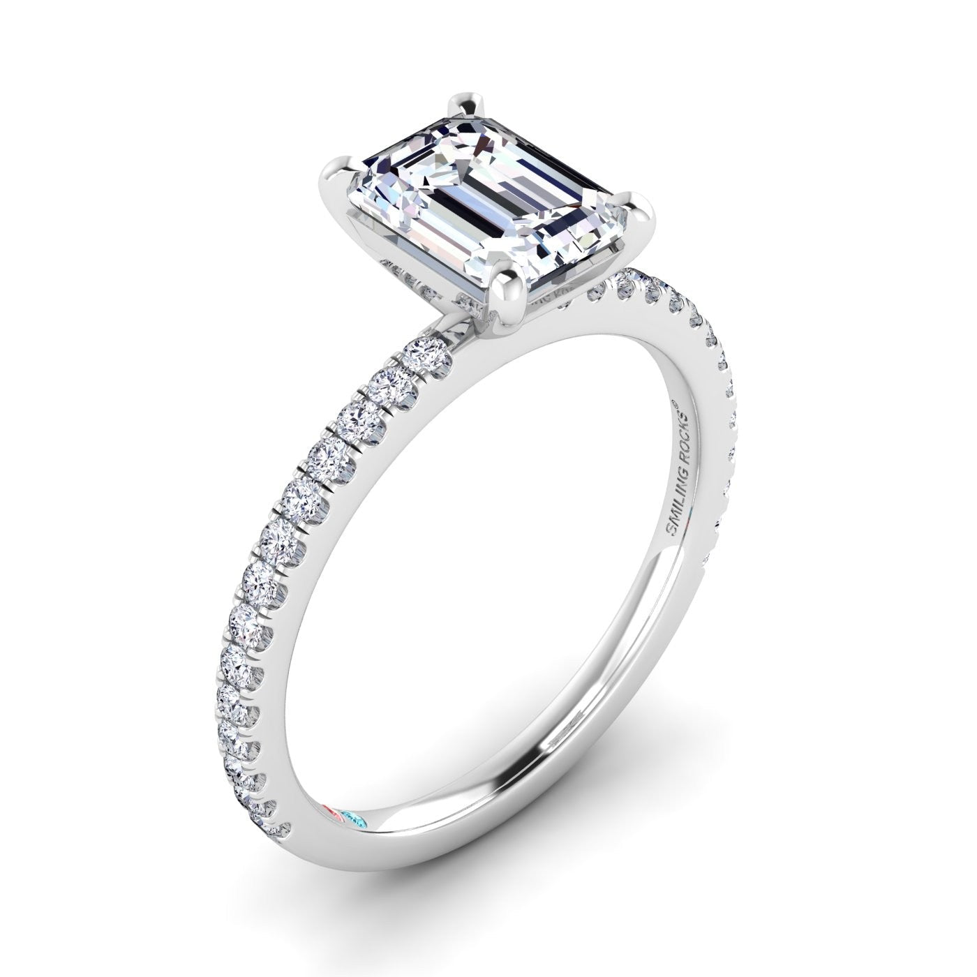 Stunning 14K engagement emerald pave petite ring with think shank. It has a 1ct emerald center lab grown diamonds and 1.27ct total weight.