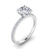 Stunning 14K engagement round pave petite ring with think shank. It has a 1ct round center lab grown diamonds and 1.27ct total weight.