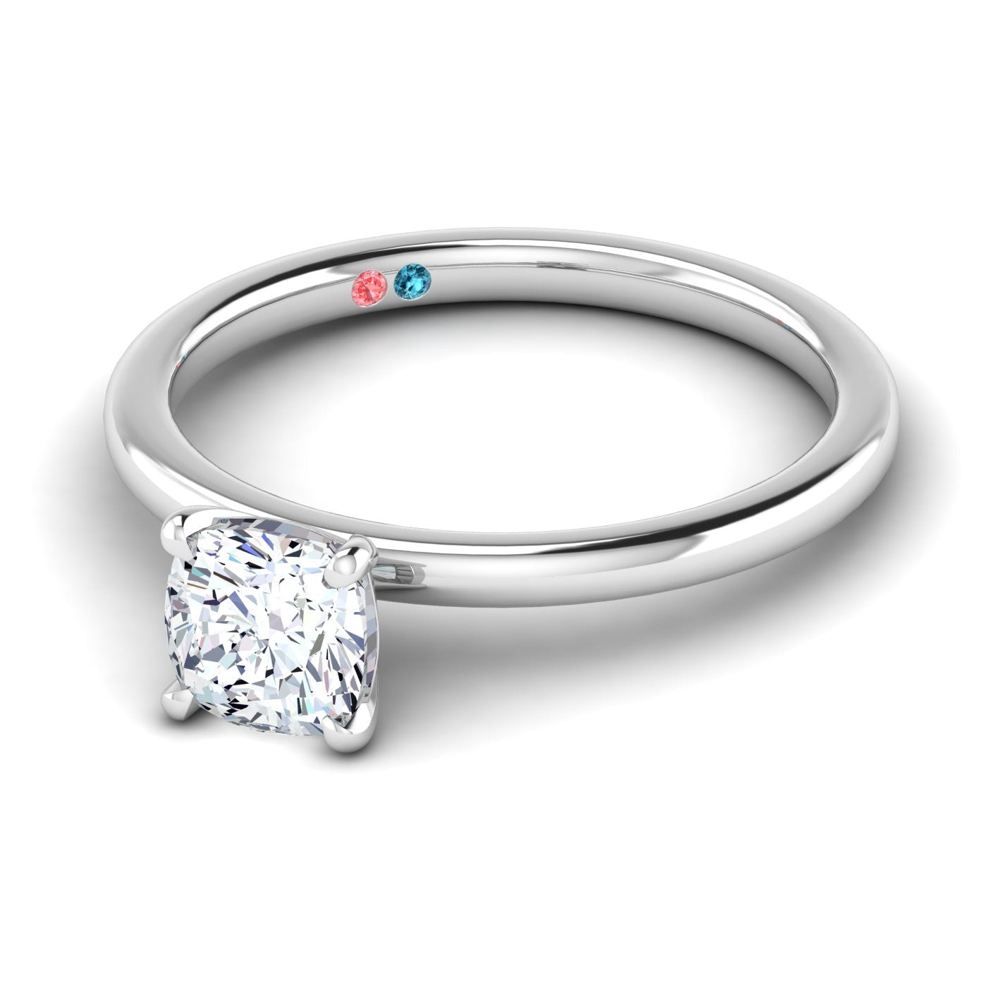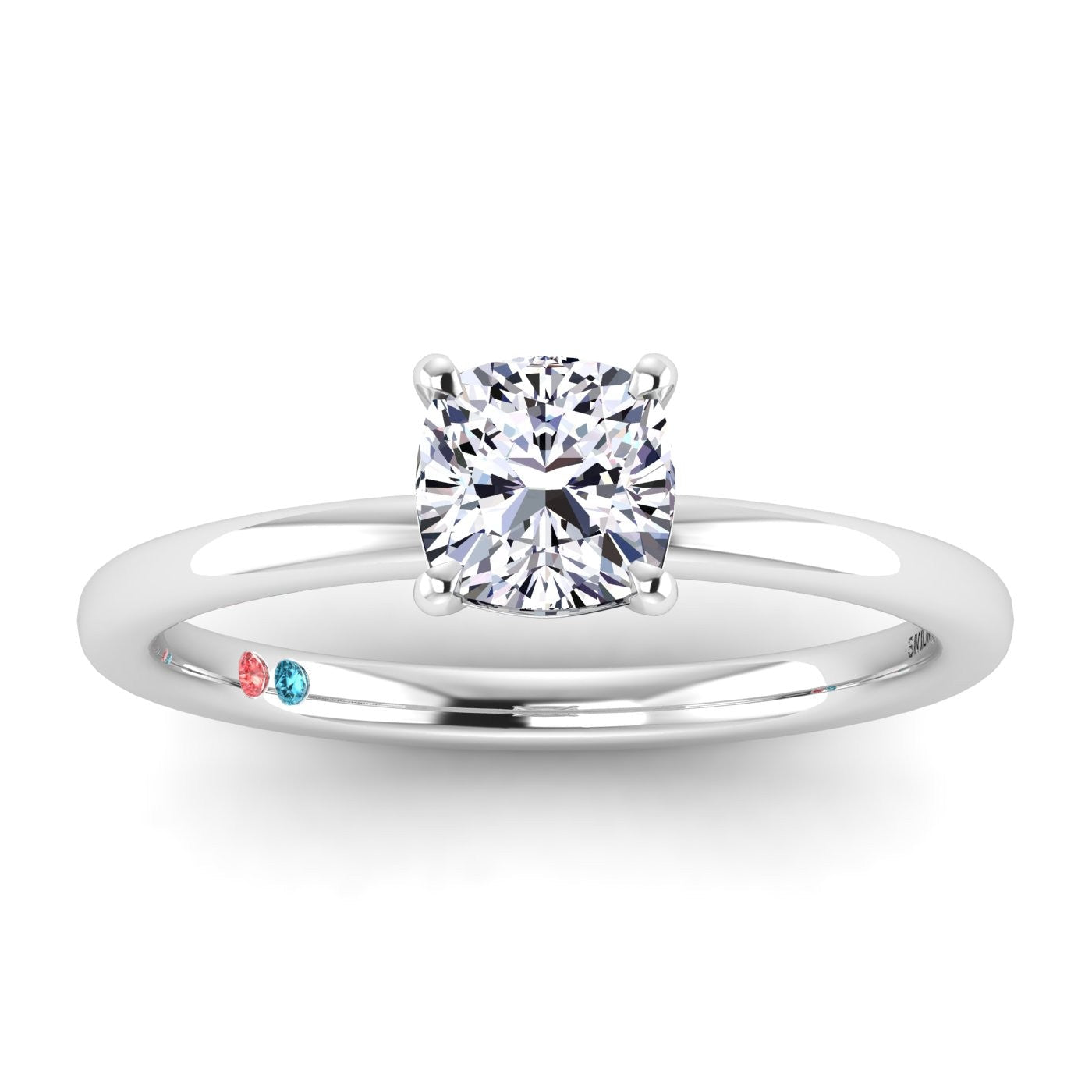 Stunning 14K engagement cushion solitaire petite ring with 1.50ct cushion center lab grown diamonds and thin shank.