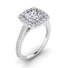 Elegant 14K engagement cushion halo ring in 1ct cushion center lab grown diamonds and 1.50ct total weight.