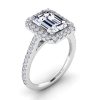Elegant 14K engagement emerald halo ring in 1ct emerald center lab grown diamonds and 1.50ct total weight.