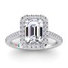 Elegant 14K engagement emerald halo ring in 1ct emerald center lab grown diamonds and 1.50ct total weight.