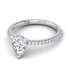 Stunning 14K engagement pear pave petite ring with think shank. It has a 1.50ct pear center lab grown diamonds and 1.77ct total weight.