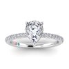 Stunning 14K engagement pear pave petite ring with think shank. It has a 1.50ct pear center lab grown diamonds and 1.77ct total weight.
