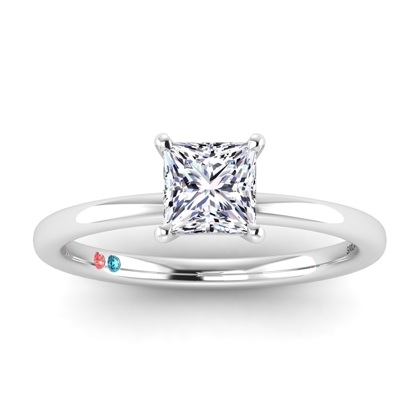 Stunning 14K engagement princess solitaire petite ring with 2.00ct princess center lab grown diamonds and thin shank.