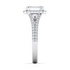 Classic 14K engagement emerald halo ring with split shank in 1.50ct emerald center lab grown diamonds and 2.00ct total weight.