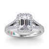 Classic 14K engagement emerald halo ring with split shank in 1.50ct emerald center lab grown diamonds and 2.00ct total weight.