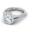 Classic 14K engagement oval halo ring with split shank in 1.50ct oval center lab grown diamonds and 2.00ct total weight.