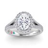 Classic 14K engagement oval halo ring with split shank in 1.50ct oval center lab grown diamonds and 2.00ct total weight.