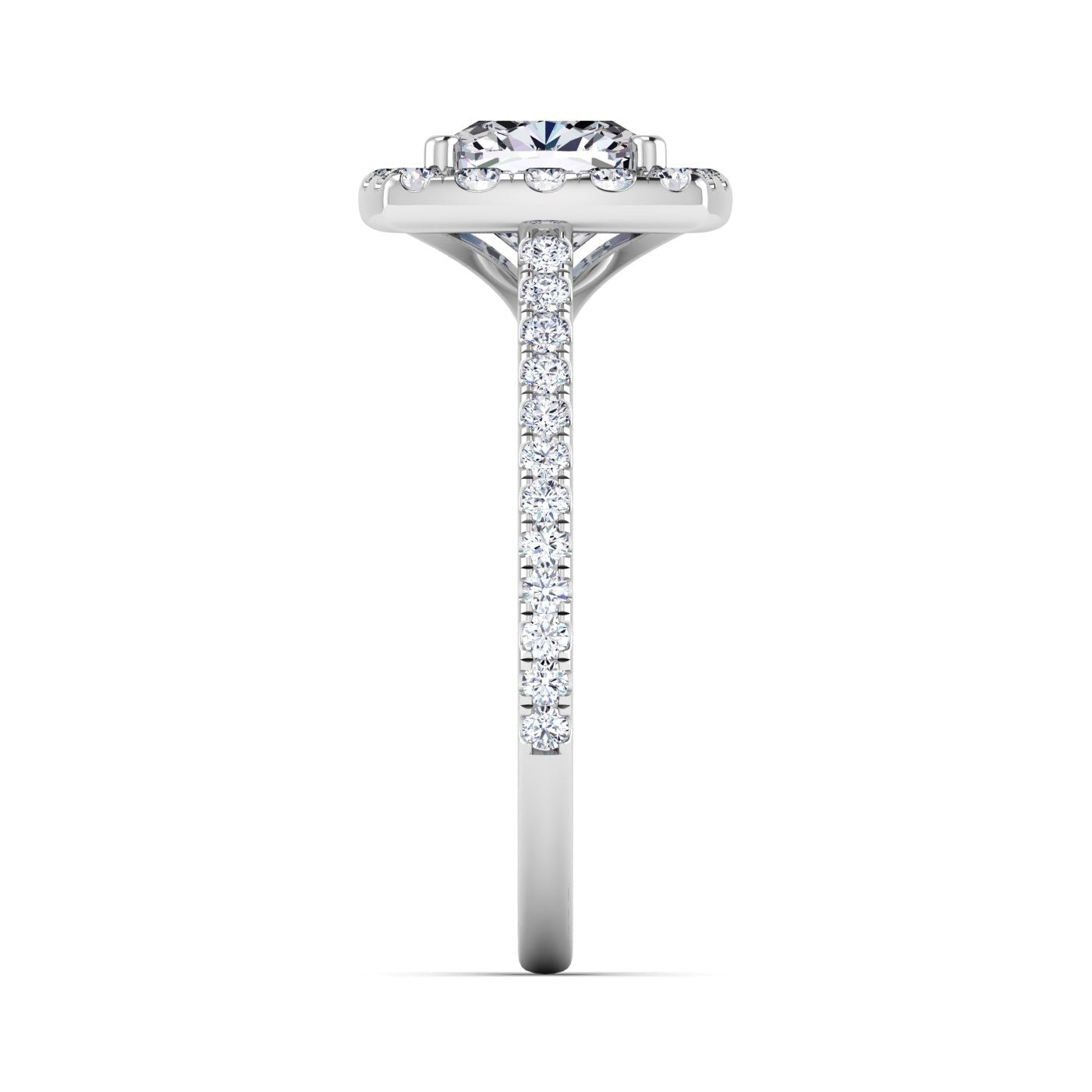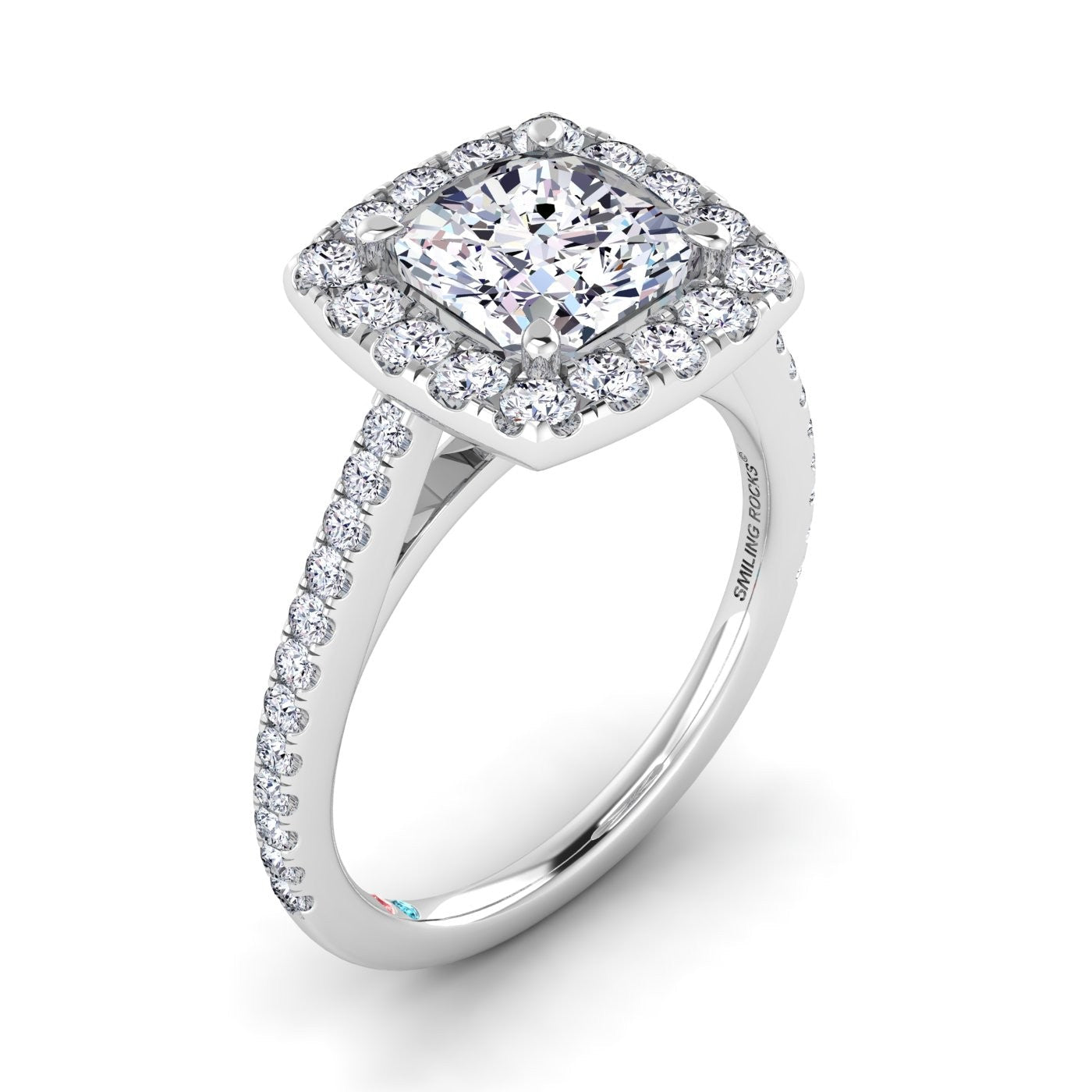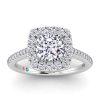 Elegant 14K engagement cushion halo ring in 1.50ct cushion center lab grown diamonds and 2.15ct total weight.